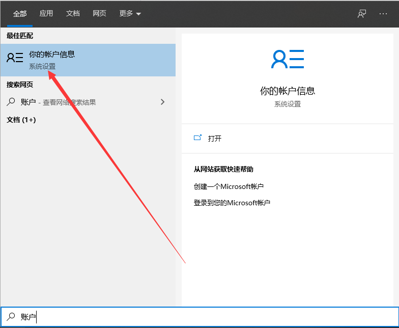 1、进入电脑“搜索”功能搜索“账户”,打开“管理你的账户”,下图所示: