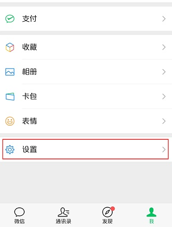 1、首先在微信界面点击下方的我,然后点击设置选项。