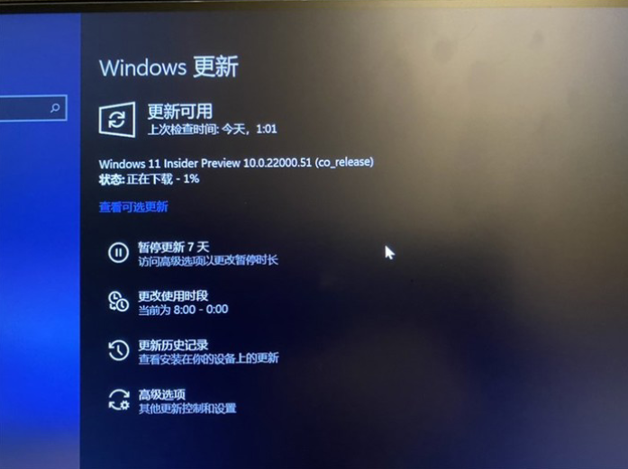 随后,按照系统提示重启。完成重启后,再进入到 Win10 设置面板,观察是否已经进入到了 Dev 通道。确认后,检查更新,即可看到 Win11 预览版推送了。