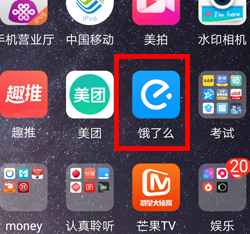 1、打开手机界面,找到“饿了么”图标