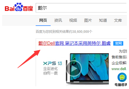 1、打开百度,搜索戴尔,并点击打开官网。