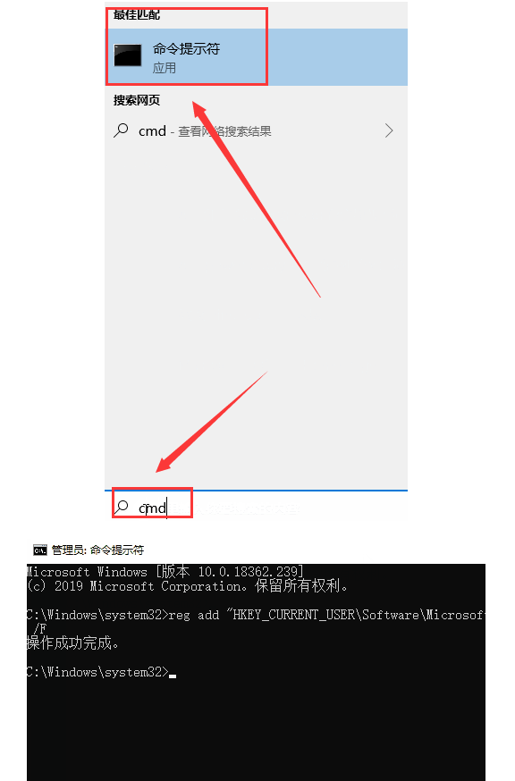 2.请尝试以下操作:将命令提示符输入小娜或搜索框,鼠标右键作为管理员打开,