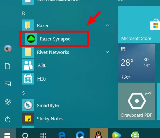 1、打开电脑开始菜单,找到并双击雷蛇鼠标的驱动程序打开进入。