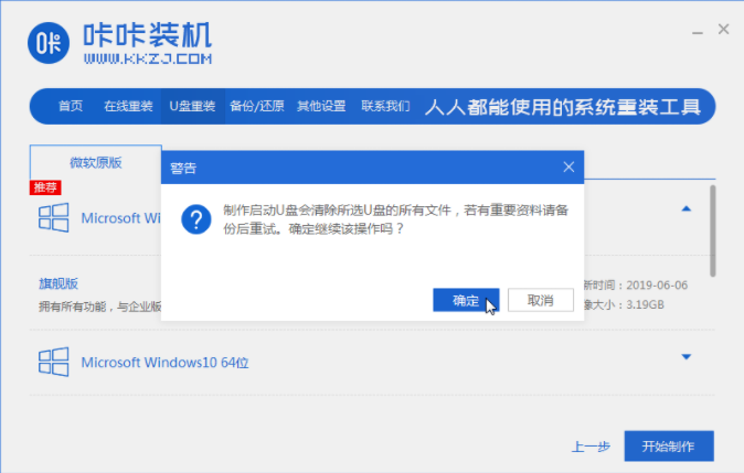 1、打开咔咔装机选择系统制作U盘启动盘;