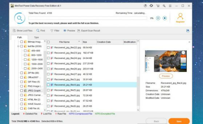 这个版本有免费的,但也有付费版本,免费的只能恢复1GB的数据,不能保存扫描结果以便以后使用。用户可以将扫描限制为特定的文件类型,MiniTool Power能够从用户甚至无法看到的分区中获取文件,并且支持包括光学介质在内的可移动驱动器。扫描速度非常快,搜索结果可以更容易地找到正在寻找的内容。