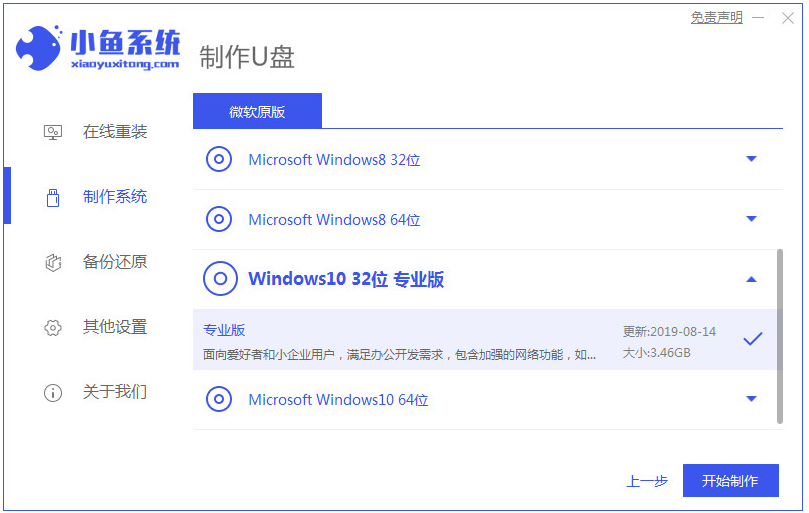 2、在这个界面选择win10系统版本,然后点击开始制作。