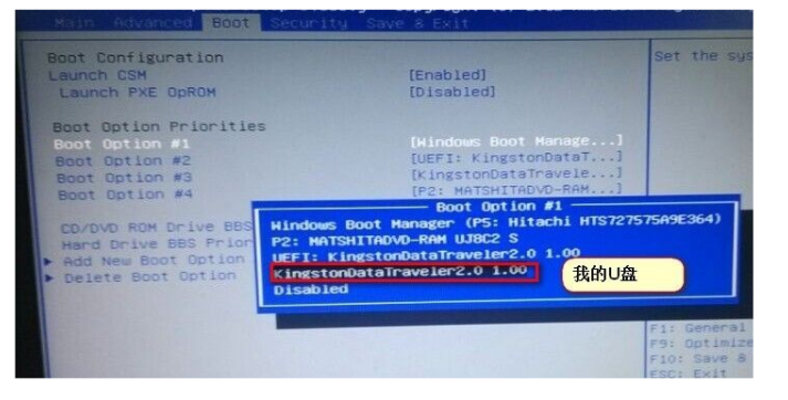4、找到u盘。选择完后按F10保存退出。重启电脑就可以按照您的选择用u盘启动了。