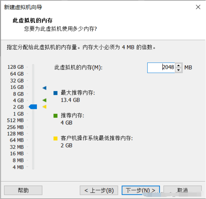 7、根据自身情况设置虚拟机内存,最好不低于2048M。