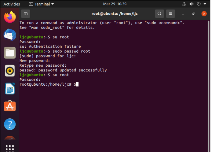 2)不知道密码,首先输入sudo passwd root回车,其次输入登录进来用户的密码,然后设置root密码,最后使用root密码进入。