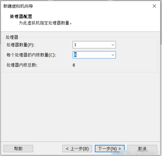 6、根据情况而自行设置处理器内核数目。