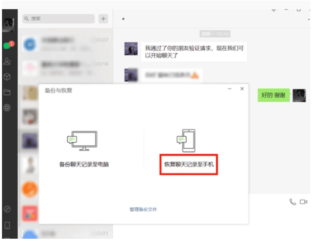 2、在跳转的新界面中,我们选择“恢复聊天记录至手机”的选项即可完成聊天记录的恢复。