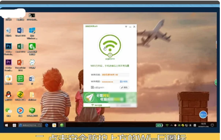 1、双击打开电脑桌面360WIFI,点击安全防护上面的“WiFi图标”。