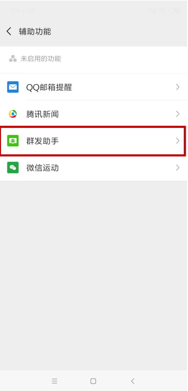 4.在功能页面,选择“群发助手”,进入群发助手设置。