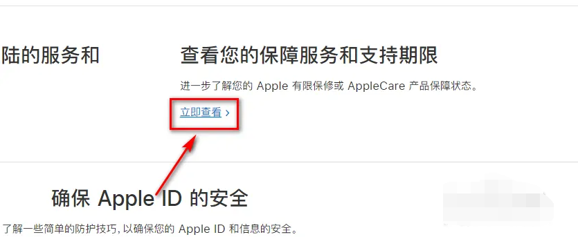 2、进入到【技术支持】页面下拉到页面底部,选中【查看您的保障服务和支持期限】后点击【立即查看】。