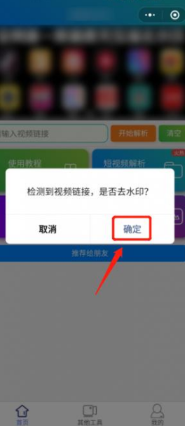 4、进入小程序,系统识别到复制的连接,点击确认即可解析成功。