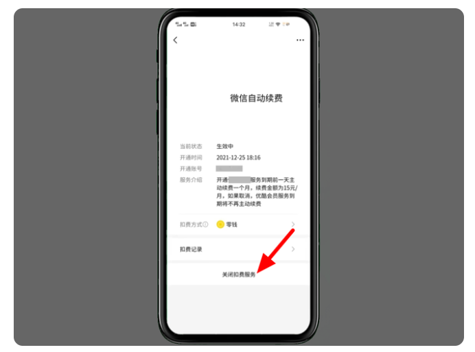 1、【微信支付】→【自动扣费的服务】→】→【关闭扣费服务选项】→【确定关闭】。