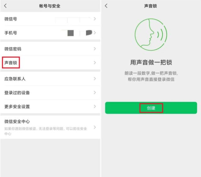 2、打开【声音锁】功能,点击【创建】开始设置声音锁。