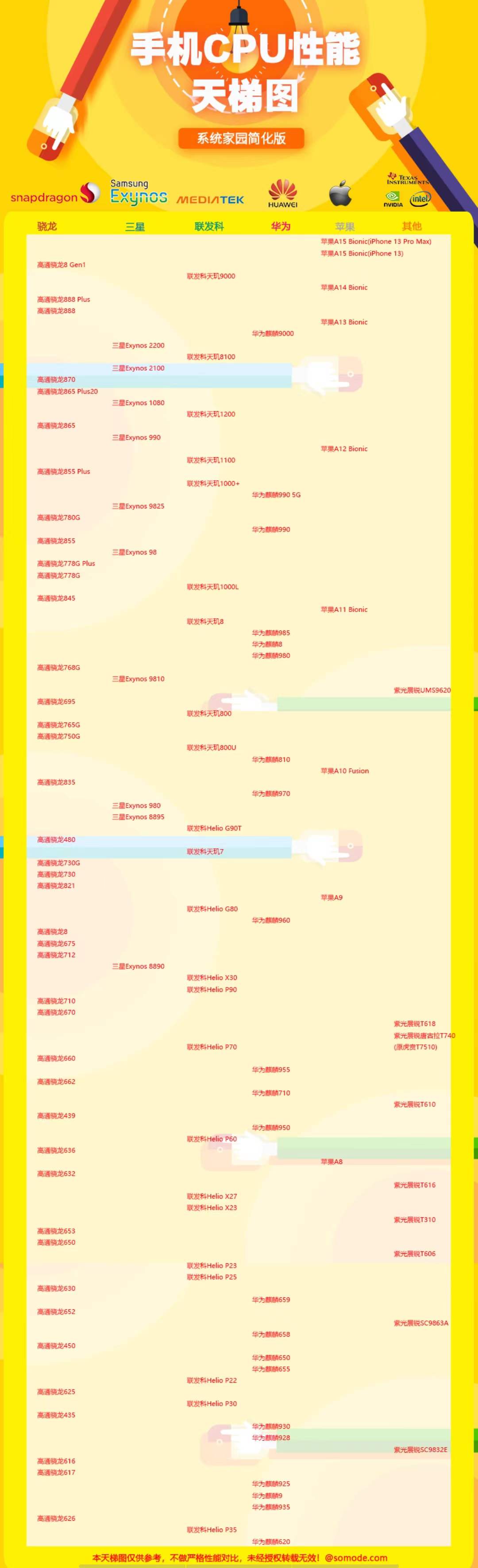手机玩游戏卡不卡,操作是否流畅,主要看手机处理器(CPU)的性能。所以大家在购买手机时多加要注意,查看自己手机处理器是高端还是入门级,学会看手机处理器天梯图,那今天就给大家分享手机cpu性能天梯图供大家参考。