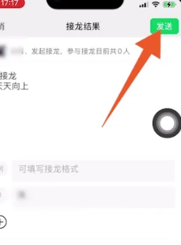 4、输入接龙内容然后点击发送,就可以发布接龙了。