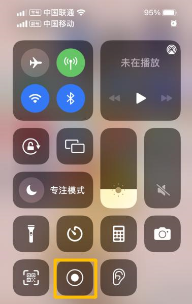 1、首先在屏幕最顶部下滑界面打开控制面板,然后找到屏幕录制图标。没有找到的,可以先进入苹果手机的设置-控制中心内添加屏幕录制。