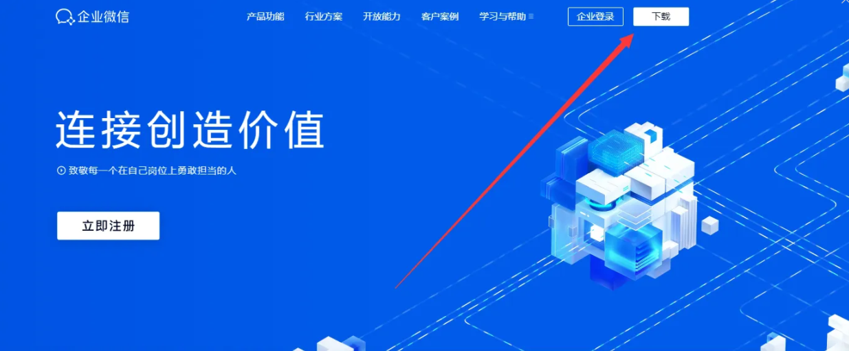 1、找到企业微信的搁痕婶官游帮方首页,点击右上角“下载”;