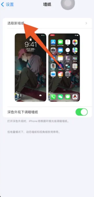 2、打开壁纸页面之后,点击选择新墙纸。