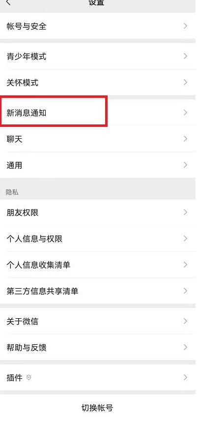 步骤三:接着在设置页面中再次点击(新消息通知)进入到此功能。