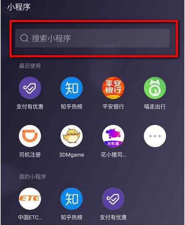 步骤二:下拉“微信”界面之后在下拉界面中搜索“支付有优惠”小程序即可。