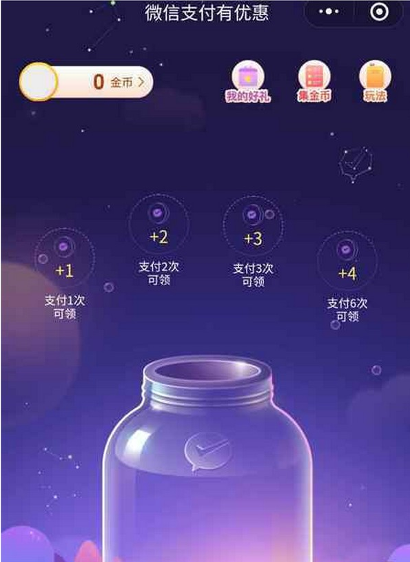 步骤三:“支付有优惠”小程序可以接到使用微信支付而生成的金币。