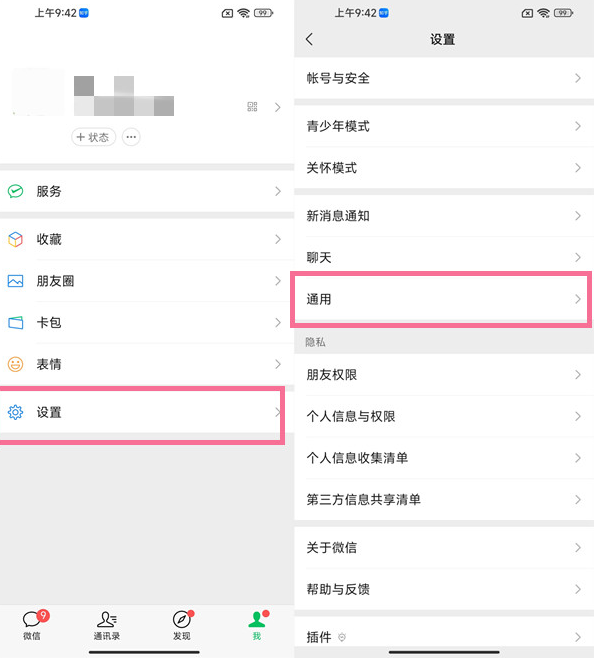1、首先进入微信的设置界面,点击【通用】。
