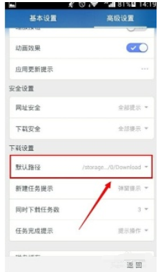 4、选择系统设置--高级设置,找到“下载设置”,可以看到软件对下载文件设置了默认路径。