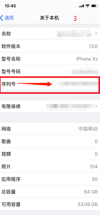 3、在关于本机页面中,我们就可以看到手机的专属序列号,复制我们的序列号备用就可以啦;