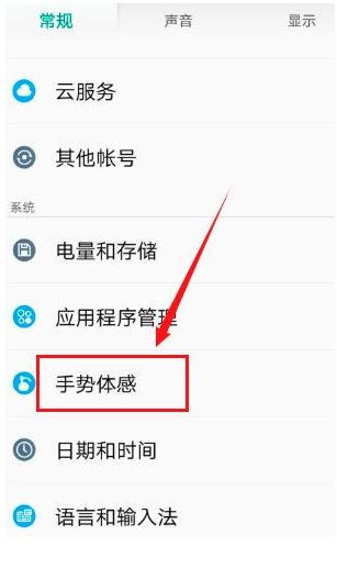 2、接着我们在手势体感页面中点击亮屏手势。