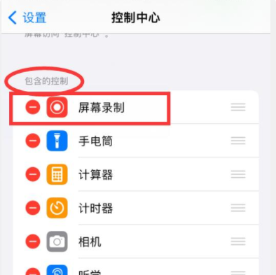 2、进入控制中心设置之后,接着将屏幕录制项目添加到包含的控制中。