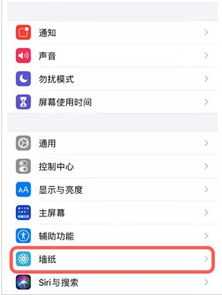1、打开IPhone手机,在桌面上点击【设置】进入其中,点击设置中的【墙纸】设置;