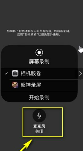 3、然后控制中心按住录制屏幕不放手,不放手,按住3S,如下图所示。