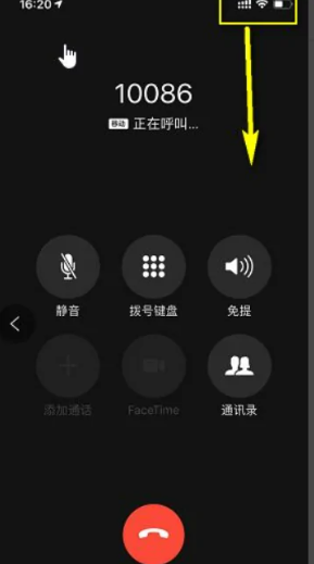 2、先拨打一个电话,然后在拨号界面调出控制中心(刘海iPhone下拉出现控制中心,iPhone8及以下是上推调出控控制中心),如下图所示。