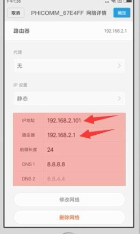 4、之后输入静态的IP地址,一般都是192.168.1.XX.或192.168.0.XX.或192.168.2.XX。路由器一栏输入路由器的IP地址,一般在路由器的背面有写,其他的不用改。