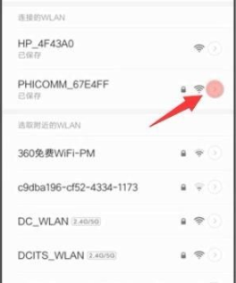 1、打开手机WiFi设置,选择你想连的WiFi,点击左边的箭头。