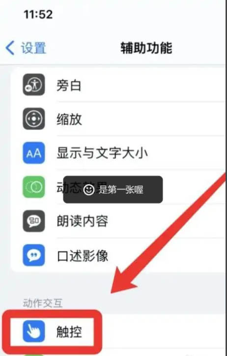 1、打开手机设置页面,进入辅助功能设置,点击触控。