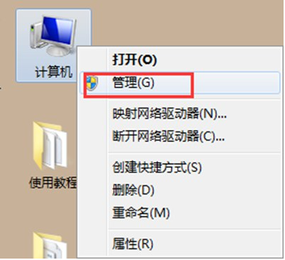 1、登录Windows7系统桌面,鼠标右键点击计算机,选择管理选项。