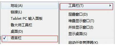 如果方法一不管用的话,那就用鼠标在任务栏任一空白处单击一下右键,然后选择“工具栏——语言栏”即可。