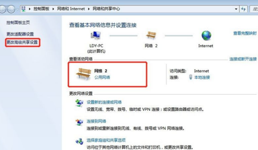 7、在这个界面点击【高级共享设置】选项。