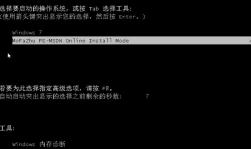 4、在windows启动界面选择mofazhu pe-msdn项进入pe系统内。