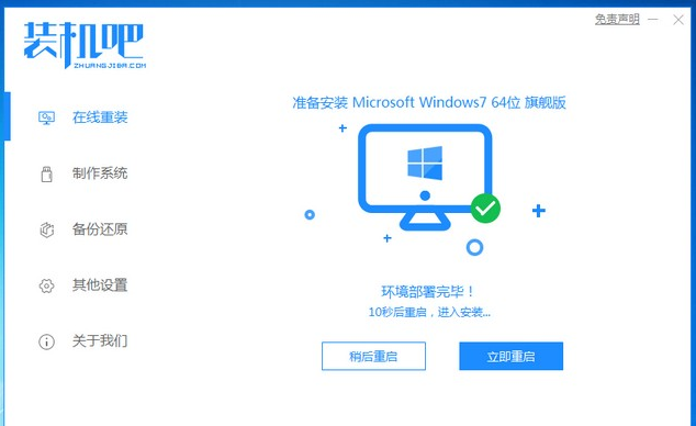 1、安装好装机吧一键重装系统软件并打开,下载安装win7的64位系统