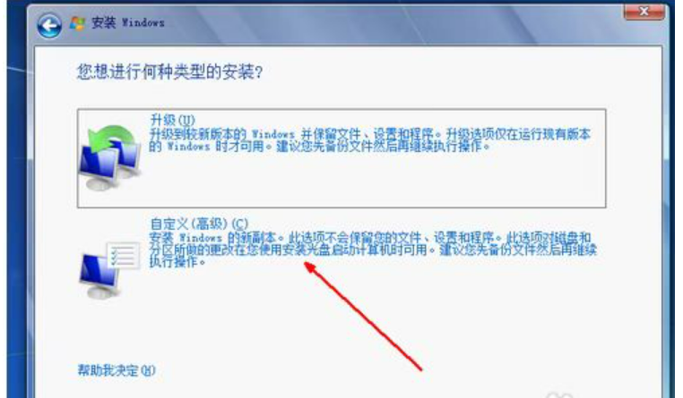 7、可以选择升级方式安装和自定义的方式。