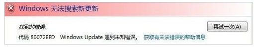 Windows Update提示错误代码80072efd怎么解决