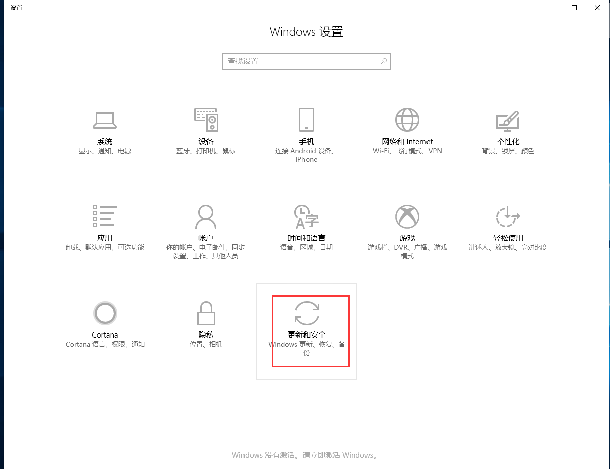 1,首先,点击打开“开始”按钮,依次打开“设置”——>“更新与安全”如图下所示;