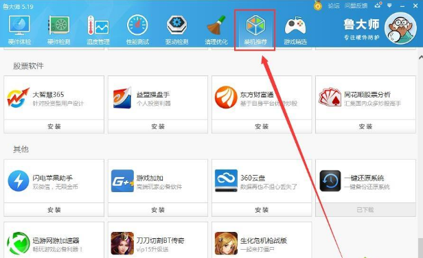 1、打开鲁大师,然后点击选择【装机推荐】。