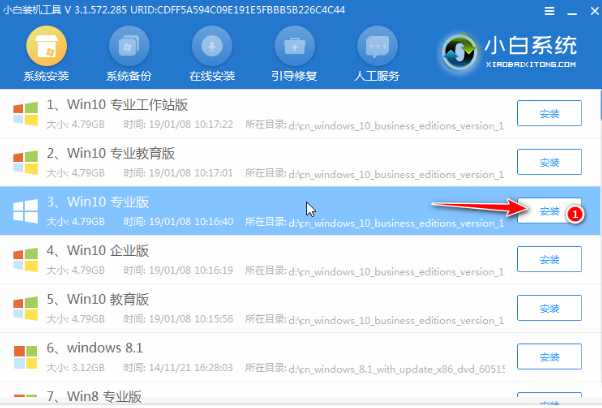 2、然后插入启动盘进电脑,开机按启动热键进入u盘启动盘,选01项pe系统进入,然后打开小白装机工具,选择下载解压好的win11系统镜像进行安装。